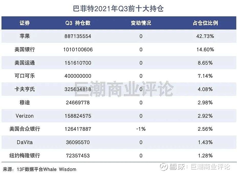 根据2021年公布的伯克希尔·哈撒韦三季度上市公司持仓,巴菲特在整个2021年一直在卖出股票:一季度净卖出39亿美元,二季度净卖出11亿美元,三季度卖出19亿美元。