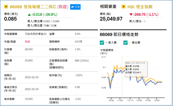 1、强势轮证:恒指瑞通二二熊(66069.HK),上周五上涨26.9%;