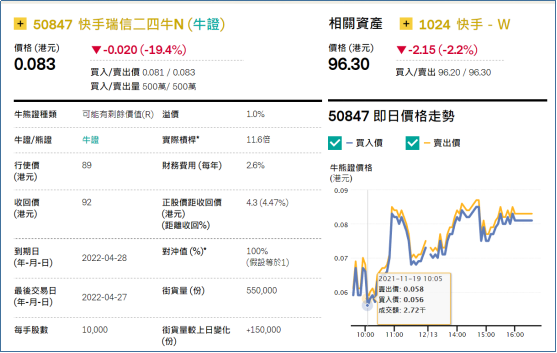 2、看错方向:快手瑞信二四牛(50847.HK),上周五下跌19.4%。