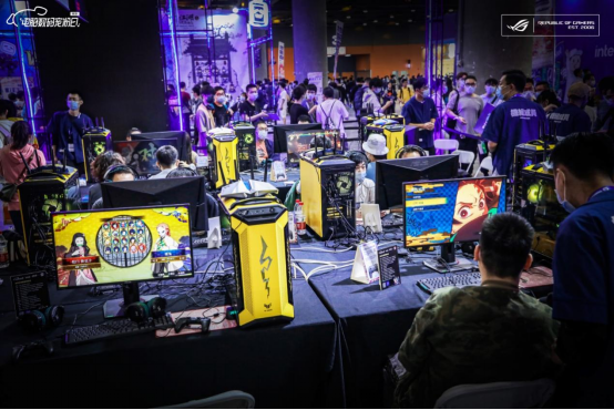 除了DIY硬件,在核聚变2021华硕展台,还为玩家门布置了充满二次元风格的天选姬笔记本体验区和ROG笔记本全家桶游戏区,让玩家们在这里能够体验到当下流行的移动平台笔记本带来的强劲游戏性能释放。