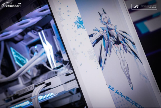 作为主机的核心动力,ROG STRIX雪鹰850W全模组电源,高达92.45%的转化效率还超越了白金级认证。基于ROG STRIX HELIOS太阳神机箱定制的雪武战姬版,机箱正面和内部结构使用RO姬雪舞战姬形态画面装饰,二次元气息浓厚。