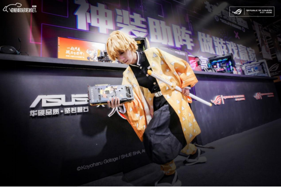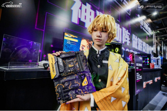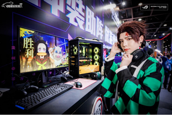 ROG展台为大家准备了充满情怀的五大主题神装区域,让玩家能在经典IP联名加持的顶级硬件包围中,深入沉浸到游戏作品、人物形象刻画的世界中,进入ROG元宇宙体验游戏改变世界的乐趣。令人惊喜的是,更有鬼灭之刃粉丝Coser自发前来与产品互动合影,信仰值满满。