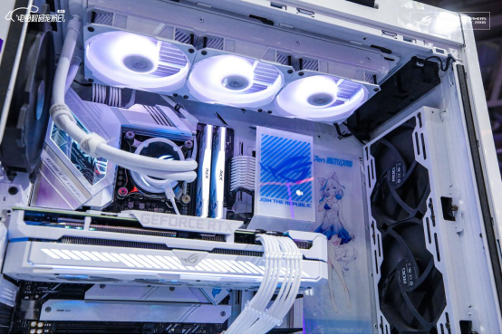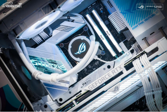 雪武战姬主题定制电竞主机是颜值爆表的ROG白色全家桶,已经实装Intel第12代酷睿平台。