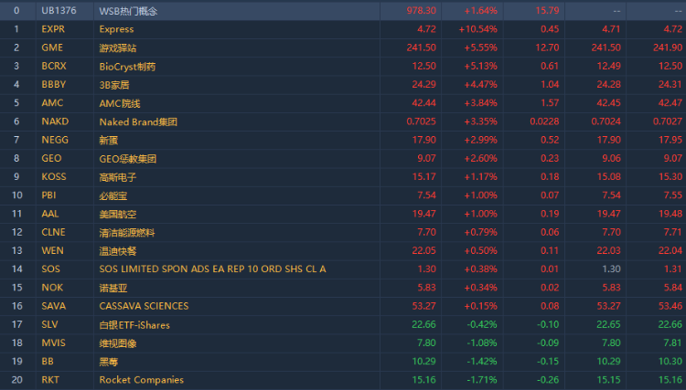 美股异动丨部分WSB概念股走高,Express涨超10%