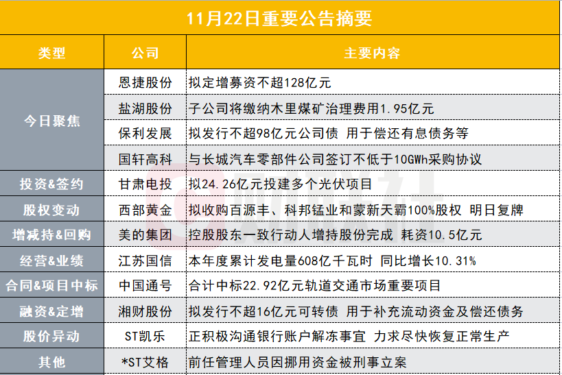 西部黄金公告,拟通过发行股份的方式购买百源丰、科邦锰业和蒙新天霸100%的股权,同时拟定增募集配套资金不超过4亿元,本次交易预计构成重大资产重组。公司股票将于2021年11月23日(星期二)开市起复牌。