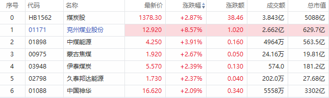 华盛资讯11月23日消息,港股部分煤炭股走强。截至发稿,兖州煤业涨8.57%;现报12.92港元每股,成交额2.66亿港元;中煤能源涨3.91%;蒙古能源、伊泰能源涨逾2%;中国神华涨2.09%,报16.62港元每股。