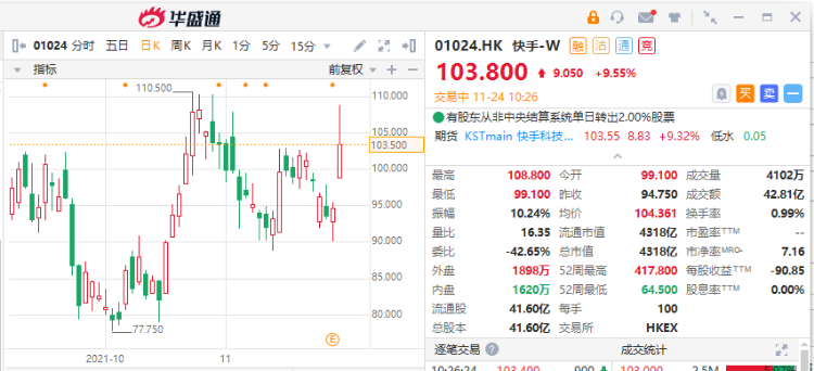 当过热的情绪开始冷却,与此同时各种非基本面的因素不断扰动投资人的情绪,快手股价最低跌到60港元左右。