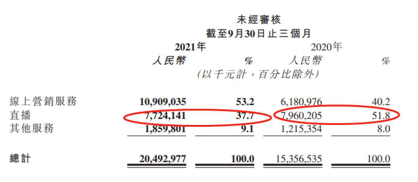 尤其是快手的线上营销服务,与去年同期40.2%的贡献相比,今年三季度的收入贡献已经高达53.2%。