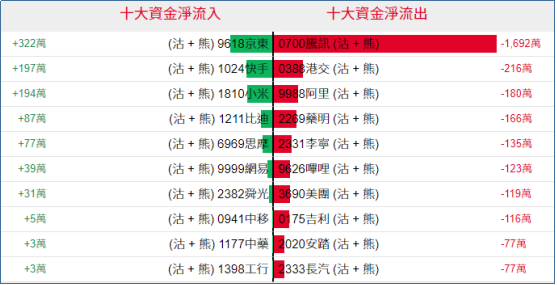 淡仓(认沽证及熊证)方面,周二腾讯相关淡仓单日获1692万港元资金净流出。