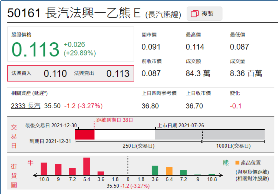 1、强势轮证:长汽法兴一乙熊(50161.HK),周二上涨29.89%;