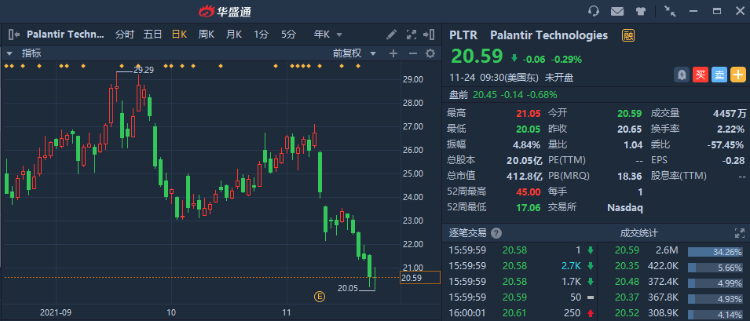 但是,Palantir优异的业绩表现并没有推动股价的上涨。虽然公司的强劲数据是华尔街一些投资者看好该股的重要原因,但是却仍有很多其他关键因素共同作用,导致公司目前存在较大风险。
