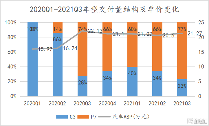 从车型来看,P7作为绝对主力表现尤为强劲,期内交付量19731辆,环比增71%,同比增212%,占比约77%,站上历史峰值。