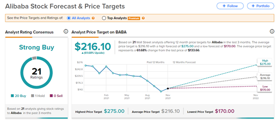 根据Tipranks的数据,在21位分析师中,约有95%的人持“看涨”态度,仅有1位分析师建议“持有”,没有分析师“看跌”。该股平均目标价为216.1美元,意味着较当前水平存在的61.68%的上涨空间;最高看涨275美元,这意味着较当前水平存在的106%的上涨空间。