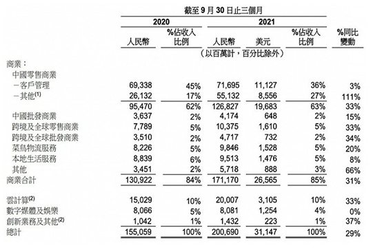 跨境及全球的零售及批发商业在这个季度整体收入同比增长34%至人民币150.92亿元。其中跨境及全球零售商业表现尤其出色,年度活跃消费者达到约2.85 亿,单季净增加2000万。