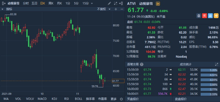 Parsimony Investment Research表示,在当前的股价水平上,动视暴雪非常有吸引力,予“强力买入”评级。
