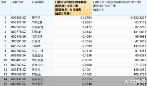 在A股市场上,除了*ST拉夏,还有许多知名服装品牌。包括著名品牌美邦服饰、万里马、潮流前线所属公司搜于特等在内的10家公司,今年前三季度业绩均出现亏损。