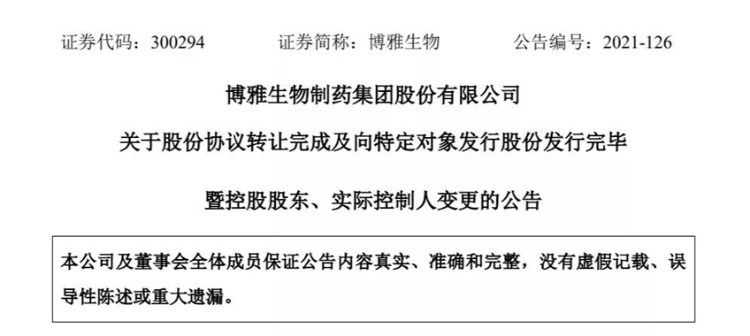 11月22日晚间,博雅生物发布股份转让和实际控制人变更公告。收购完成后,华润医药 $03320.HK 本次发行后其总股本的28.86%,华润医药控股成为其控股股东。