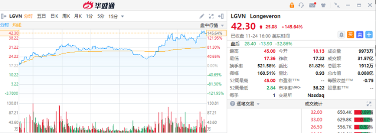美国细胞疗法药企longeveron LLC $LGVN 隔夜暴涨145.6%,成交30亿美元,市值仅8亿美元。美国食品和药物管理局(FDA)本周批准公司的创新药Lomecel-B用于治疗危及生命的婴儿心脏病的罕见儿科疾病。