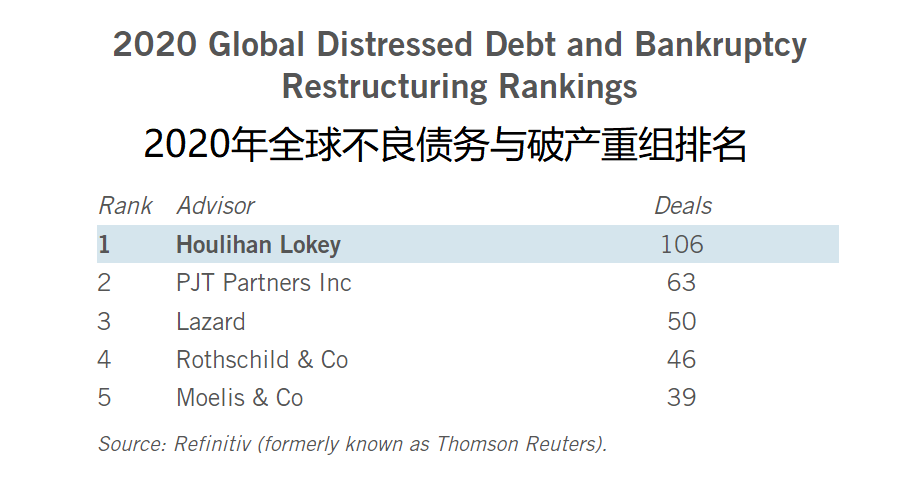 在不良债务和破产重整业务领域:自1988年成立以来,华利安诺基已为1400多笔重组交易提供咨询,总债务额度超过3.0万亿美元。