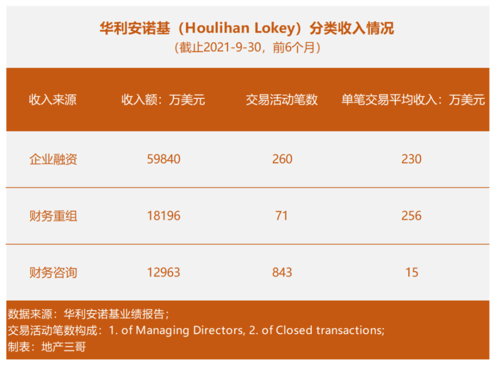 财务重组:占公司收入的20%。单笔交易收费大约2.56亿美元;当然,这肯定依据重组难度、金额、进度来定的。而不能一概以笔数作为技术来平均,此仅为参考作用。