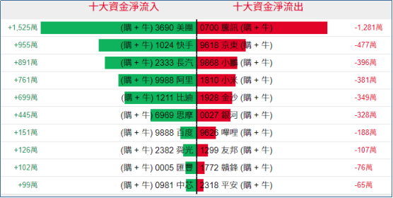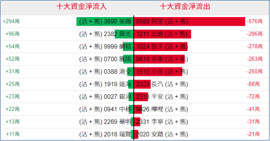 好仓(认购证及牛证)方面,周四美团相关好仓单日获1525万港元资金净流入部署;腾讯相关好仓单日获1281万港元资金净流出。