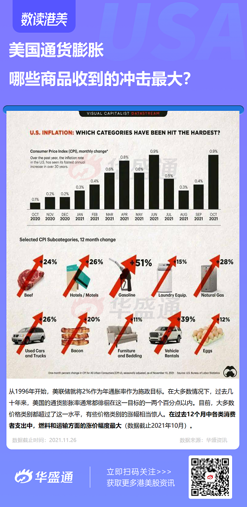 根据万得整理的数据发现,从细分来看,2021年,让美国消费者感受到“切肤之痛”的涨价领域分别是: