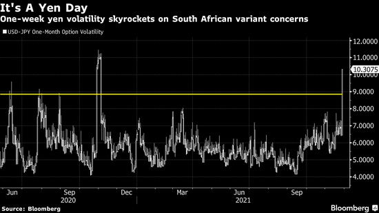 随着交易员评估南非发现的冠状病毒变异毒株的影响,发达市场货币的波动率创一年来最大涨幅。