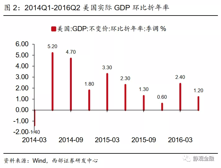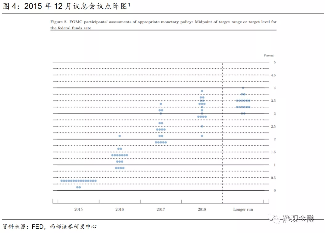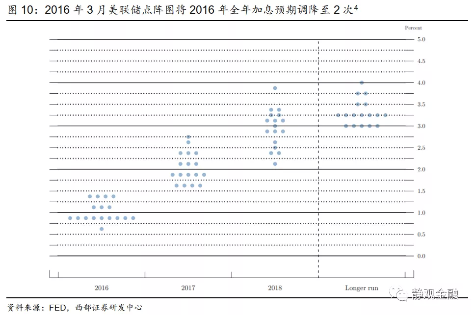 如图2所示,2015年Q4美国实际GDP环比折年率放缓至0.6%,为2014年Q1后最低水平。在此背景下,美联储不仅在2015年12月议息会议上落地了加息靴子,并且通过点阵图向市场传递了2016年美联储还将加息4次的前瞻指引。