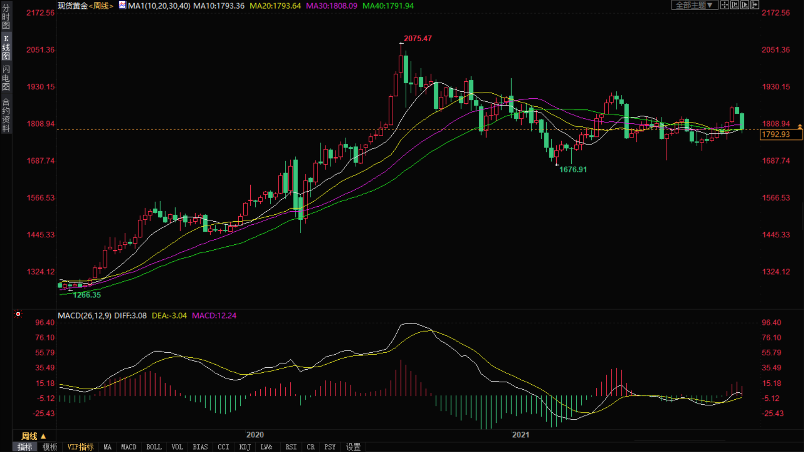 现货黄金两周下跌,本周下跌2.86%,盘中最低触及1778.70美元/盎司,报收于1792.93美元/盎司,由于鲍威尔连任,美联储会议纪要对加息持开放态度,提升美联储明年加息三次的预期,对美联储可能转向更加鹰派的押注不断增加,金价录得周线跌幅。