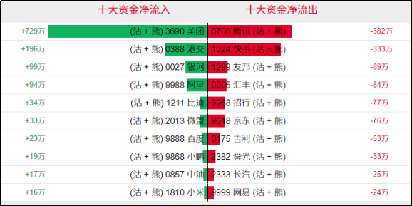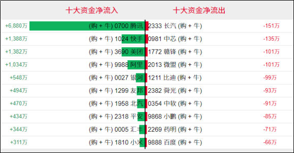 上周五北水南下资金单日录得约为9.61亿港元净买出。个股方面,美团、快手单日分别录得约4.22亿、2.98亿港元资金净买入;相反,腾讯、顺宇光学单日分别录得约18.6亿、1.33亿港元北水资金净卖出套现。