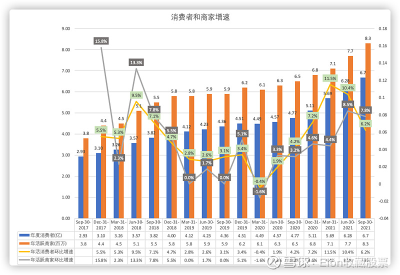 2.更让人惊喜的是,这个季度商家净增60万,和上个季度基本持平,处在历史最好的状态。商家网络是整个平台的根基,有供给不会缺需求。
