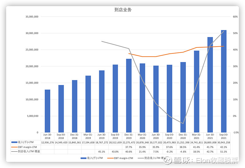 到店总的来说比较稳,EBIT还涨了一些。增速就单季而言略低于预期,过去两年复合增速18%,宏观环境也不好,可以接受。