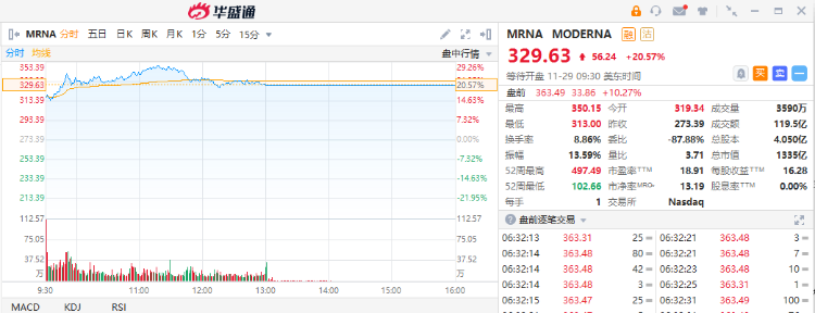 疫苗股Moderna的首席医疗官保罗·伯顿(Paul Burton)表示,针对最新出现的新冠病毒变异毒株Omicron,他对目前接种的疫苗的有效性存疑,如果确实如此,一种重新配制的疫苗可能在明年早些时候上市。Moderna盘前走高,截至北京时间19:31,该股涨10.27%。