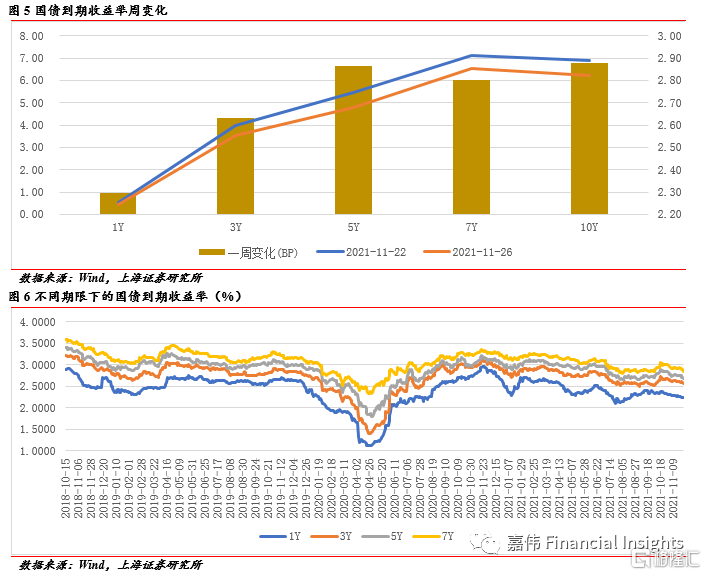 美联储新任主席落地,市场对美联储加息预期下降,叠加国内的流动性合理充裕,跨周期调节预期强力,国债到期收益率出现下滑。1年、3年、5、7年、10年期国债到期收益率分别下滑0.96 、4.32 、6.62 、6.00 、6.76个BP。