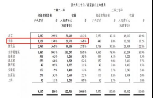 如此一来,鸿盛物业的资产情况,从烨星集团年报所公布的地区分布中便可以窥见一二。据烨星集团发布的2021上半年财报,烨星集团80%以上的在管面积来自京津冀地区,该地区所带来的物业管理服务收入占比85.9%。