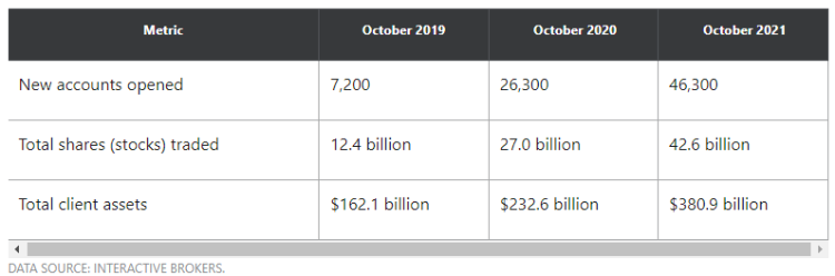 盈透证券的客户资产自2020年1月以来也增长了一倍多,从1760亿美元增至今天的3800亿美元(截至11月28日)。