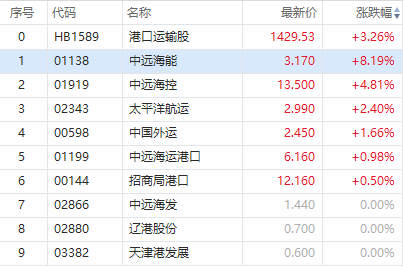 华盛资讯11月30日消息,港股海运板块午后走高,截至发稿,中远海能涨超8%,中远海控涨近5%,太平洋航运涨超2%,中国外运、招商局港口等跟涨。