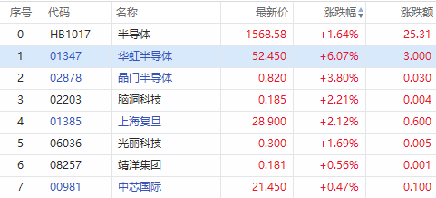 华盛资讯11月30日消息,半导体芯片股盘中拉升,截至发稿,华虹半导体涨超6%,晶门半导体涨超3%,上海复旦涨超2%。