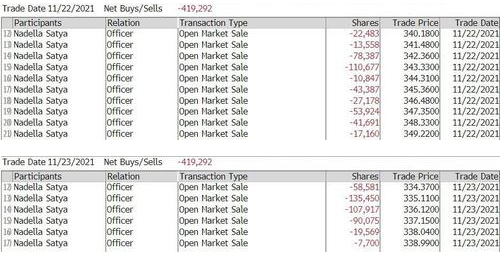 据美国证券交易委员会文件显示,11月22-23日,微软CEO Satya Nadella出售了83.86万股,按每股约340美元的价格来计算,总价值约2.85亿美元(约18亿人民币)。而此次出售股票数量已经占到Nadella持股的一半,是其迄今为止出售股票最多的一次。