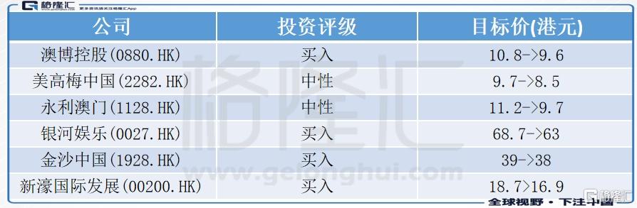 高盛发研报指,注意到中国收紧对中介活动的监管,该行认为赌场运营商可能会更倾向于缩减其中介贵宾厅业务敞口,将重点进一步投放在高端中场业务。该行指贵宾厅业务对赌收的贡献由2013年的66%,降至2019年疫情前的39%,估计约7成与中介相关,当中太阳城(1383.HK)贡献约一半,即总贵宾厅赌收约35%。而目前预测贵宾厅业务于2022及2023财年,分别回复至2019年水平的15%及25%(此前分别为45%及55%),而总赌收分别回复至2019年水平的51及72%。该行对6家赌场营运商2022及2023财年的EBITDA预测下调2%至20%,目标价下调3%至13%。