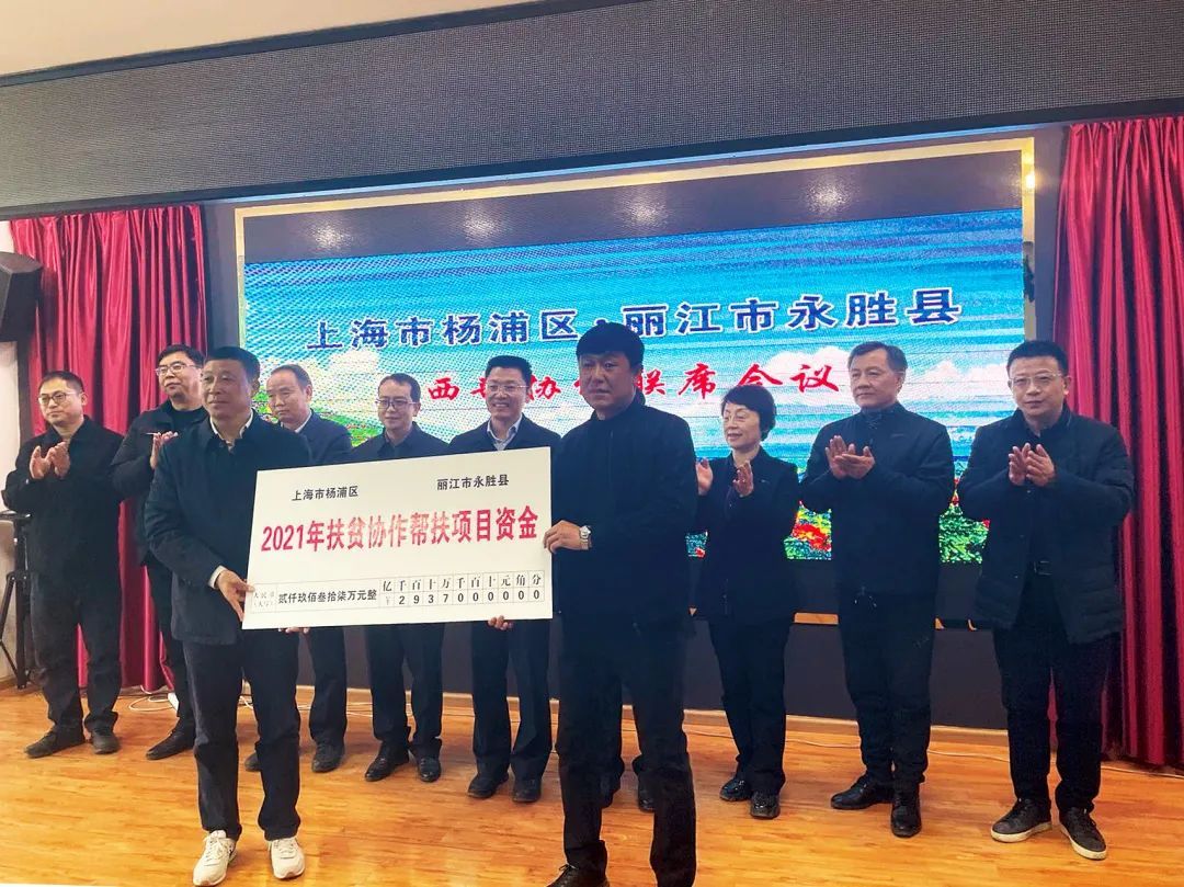 会上,永胜县主要领导汇报沪滇协作帮扶情况。签订两地2021年对口帮扶协议,捐赠帮扶资金。