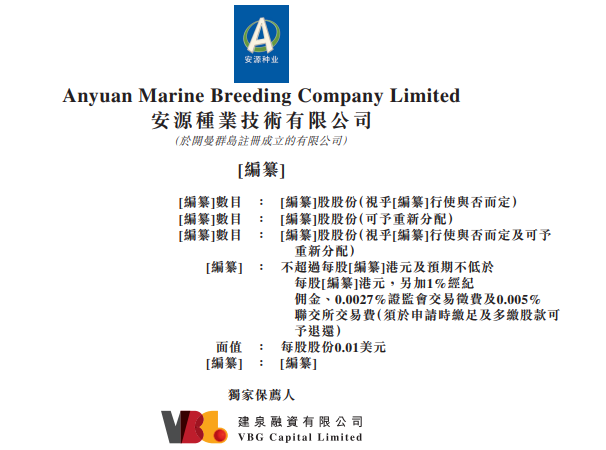 - 据港交所文件:内地海参苗养殖企业安源种业技术向港交所提交上市申请书。