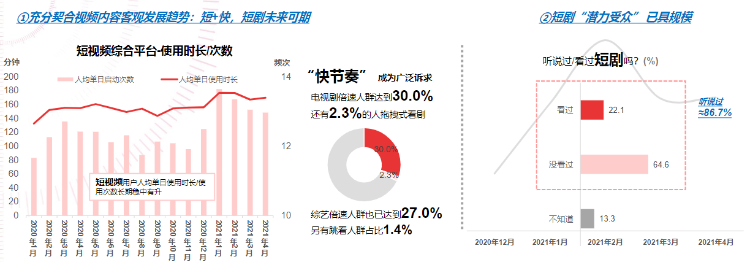 根据《快手短剧价值研究报告》显示,短剧充分契合了视频内容的客观发展趋势,即“短+快”,使得短剧未来增长空间充满想象。
