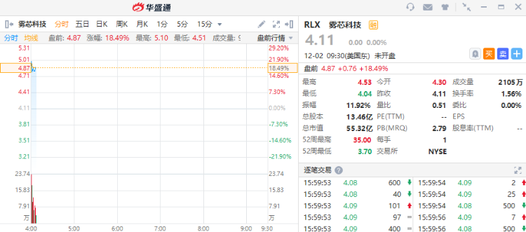 华盛资讯12月2日消息,今日美股盘前,雾芯科技(RLX)盘前涨超18%,国家烟草专卖局就《电子烟管理办法(征求意见稿)》公开征求意见,提出从事电子烟生产、批发和零售业务应取得烟草专卖行政主管部门许可。