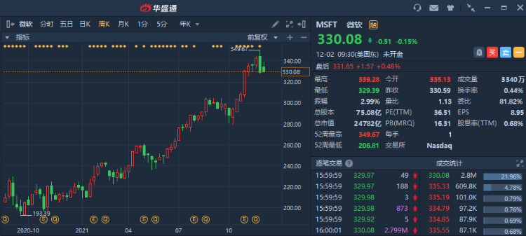 从积极的方面来看,微软在过去5个12月份中的4个录得涨幅,唯一下跌的那一年(2018年)其跌幅也小于标普500指数。2018年12月,微软股价下跌8.4%,虽然优于大盘,但那一次大回调把微软近5个12月份的平均涨幅拉低到了0.9%。