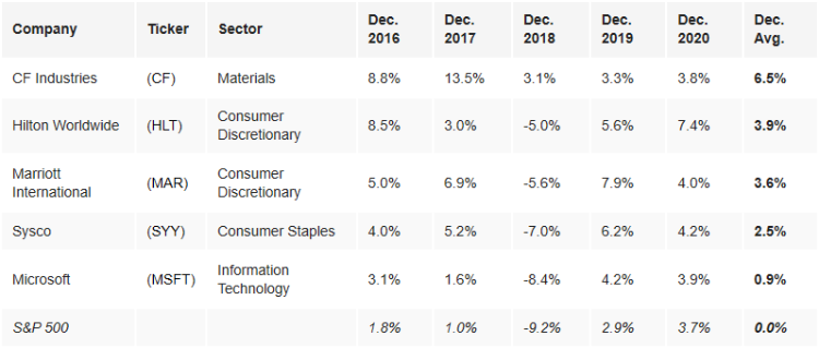 S&P Global Market Intelligence和MarketSmith的数据分析显示,只有5只标普500成分股,在最近的5个12月份每次都击败了标普500,成为了“幸存者”,其中包括CF工业控股 $CF 、希尔顿酒店 $HLT 、微软 $MSFT 等