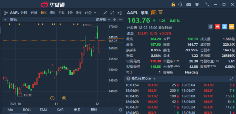 苹果股价收跌0.61%,知情人士透露,苹果已通知零部件供应商,iPhone 13系列的市场需求减弱。此前有消息称,由于缺少零部件,苹果公司已将今年iPhone 13的9000万台产量目标下调1000万台,并希望明年供应有望改善时弥补大部分缺口。但这些订单可能不会实现。该股在开盘时一度下跌4.2%,至157.80,创5月4日以来最大跌幅。