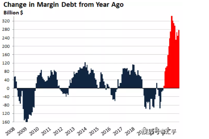 与前几年相比,保证金债务的增加已成为一个巨大的异常值,保证金债务同比增长42%,两年内增长66%。