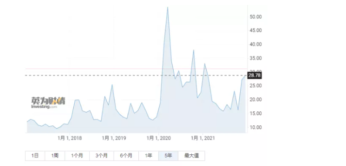 投资情绪就像钟摆,从一个极端到另一个极端,那么现在投资者的风险态度是如何的呢?贴一张VIX指数的5年走势图吧: