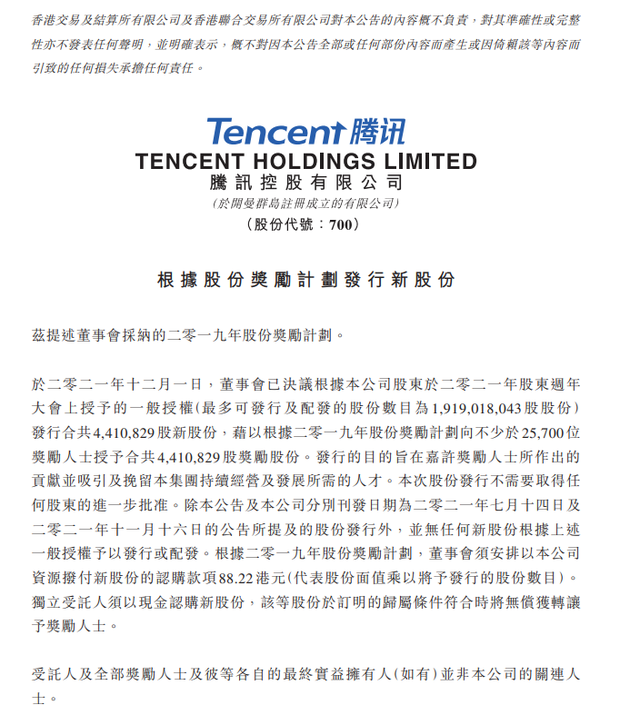 腾讯出手:向2.57万人发股票,人均超8万港元!